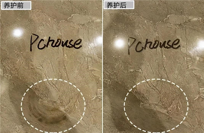 打磨后的瓷砖表面留下了黑色痕迹,PC酱本以为大角鹿瓷砖终于抗不过专业角磨机这一关,没成想瓷砖表面经保养后并无留痕,黑色印记只是高温留下来的痕迹,并没有伤害到瓷砖本身釉面。