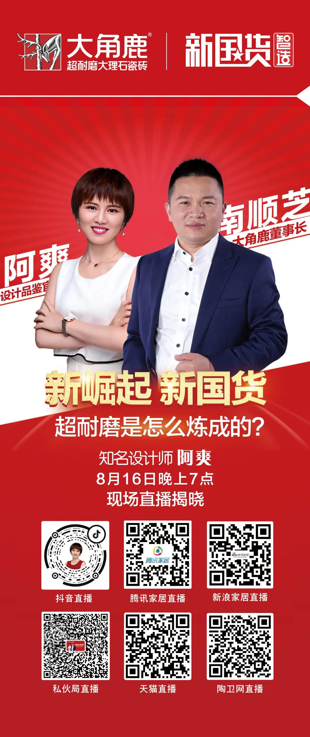 8月16日,拥有2000多万粉丝的网红设计师阿爽来到大角鹿总部,直播挑战全球超耐磨瓷砖之王——大角鹿,56.1万业主通过腾讯家居、新浪家居、阿爽抖音直播间等6大直播平台见证了大角鹿超耐磨!