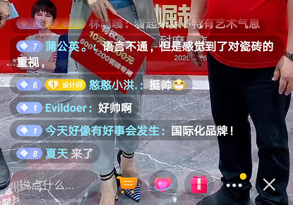 在2小时直播挑战活动中,设计师阿爽站在设计师专业角度,通过直观的对比耐磨测试,给业主和粉丝们普及了瓷砖耐磨的重要性,装修选瓷砖,首选大角鹿。阿爽的抖音直播间也邀请了大角鹿产品研发总监、意大利资深设计师罗伯特,拥有25年国际陶瓷设计经验的罗伯特先生表示:大角鹿公司注重原创设计,我们的产品也荣获了中国意大利陶瓷设计大赛金奖等国际设计大奖,最后也要感谢大角鹿董事长南总对原创设计的重视。
