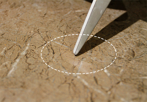 结果大角鹿瓷砖表现超出预期效果,被5级硬度的石材刮磨也没有出现刮痕,看来耐磨性的工艺水准确实很赞,釉面能经得起时间检验。