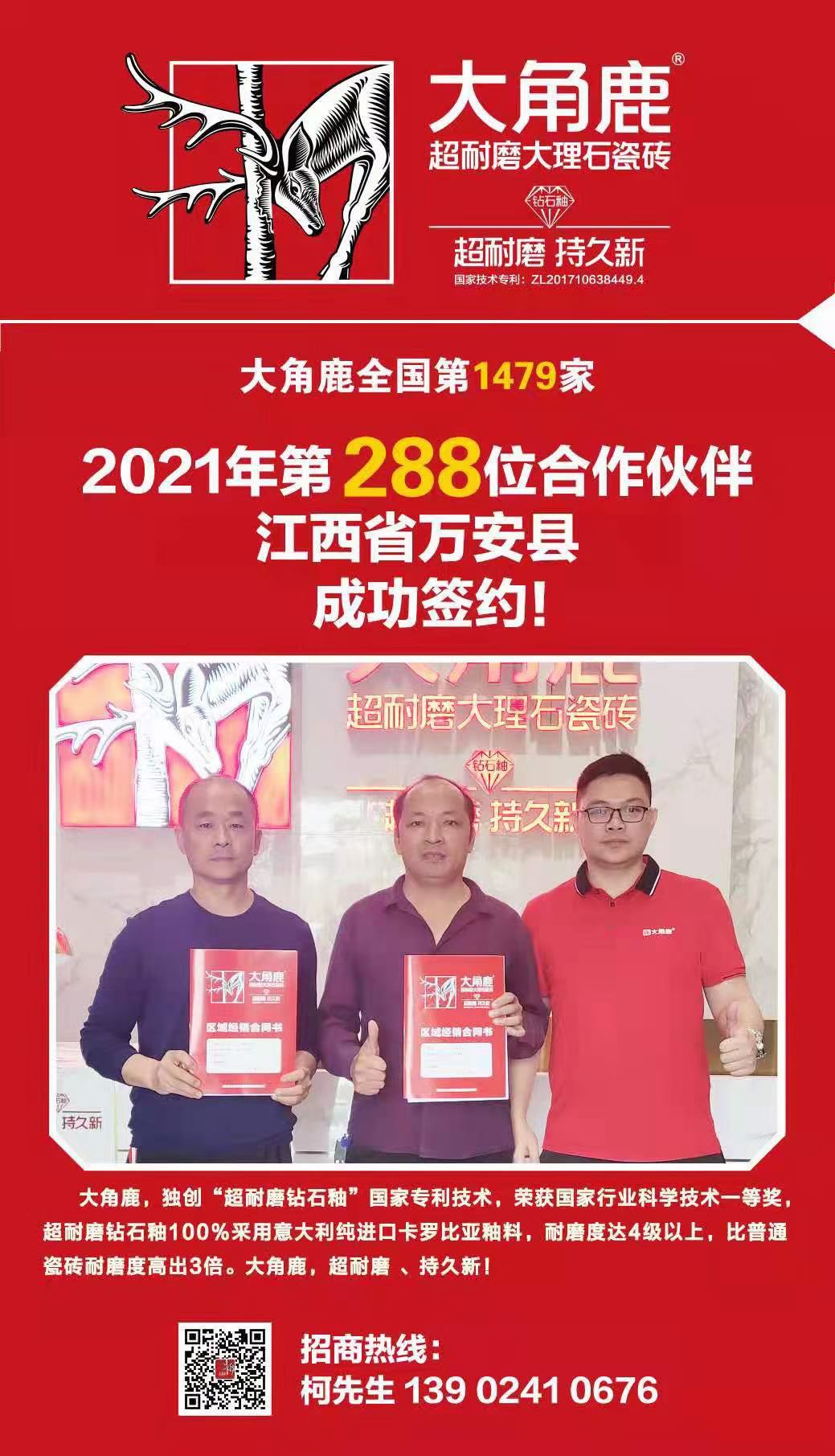 恭喜河南省信阳市光山县蒋总成为大角鹿超耐磨大理石瓷砖2021年第87位新伙伴