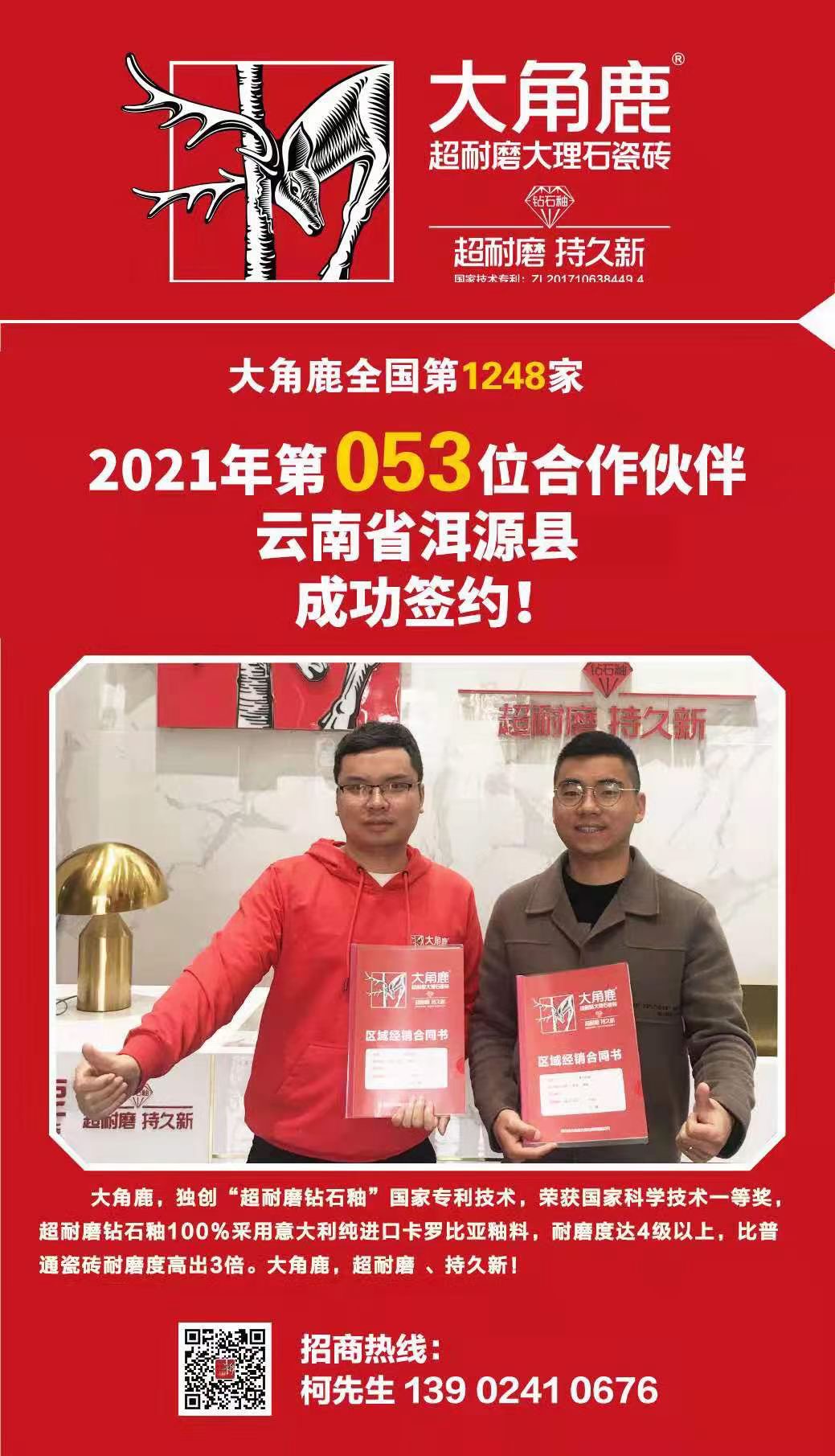 非常感谢杨总对大角鹿超耐磨大理石瓷砖支持与认可!祝生意兴??!
