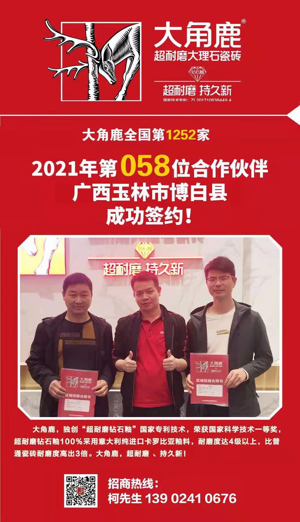 恭喜陈总成为我们2021年第58位新伙伴!非常感谢陈总对大角鹿超耐磨大理石瓷砖支持与认可!祝生意兴?。?/p>
