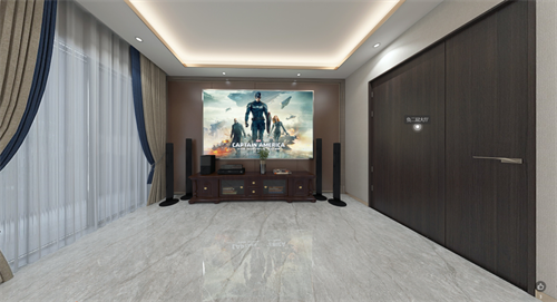 多功能影音室选用密缝连纹大板·爱尔兰灰,让整个空间更大气,视觉延伸感更强。