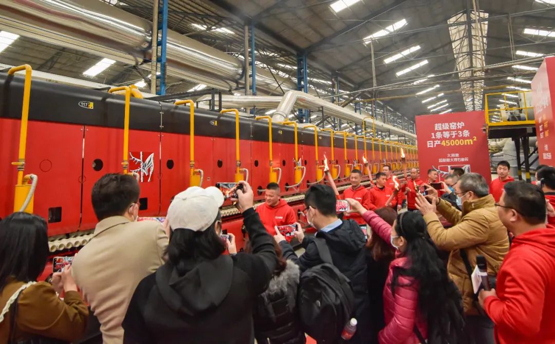 2月11日,大角鹿再一次轰动中国陶瓷行业!大角鹿超级智能窑炉在大角鹿新兴3厂正式点火投产,这是全球绝无仅有的超级智能大窑炉,这条数智化生产线配备了行业顶尖设备,拥有3台全球顶尖的美国星光600DPI超高清希望喷墨机、3台恒力泰10090吨压机、3条泰莱4.0智能釉线、中鹏399米超级节能窑炉,日产45000m²,1条大角鹿超级窑炉等于3条普通窑炉的产量。