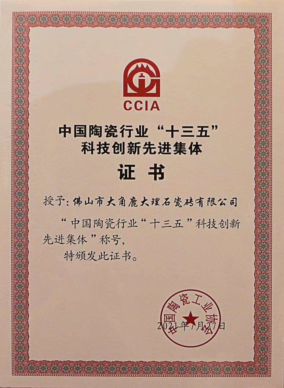 大角鹿拥有中国陶瓷工业协会授予的“中国超耐磨陶瓷新材料研究院”、“大理石瓷砖研究所”,联合意大利卡罗比亚釉料公司成立的“超耐磨钻石釉中国研发中心”和中国建筑卫生陶瓷行业授予的“超耐磨陶瓷新材料研究中心”以及中国建筑材料流通协会授予的“中国超耐磨陶瓷新材料示范基地”。大角鹿代表着全球最严格的耐磨标准,是瓷砖行业革命性产品,让瓷砖进入超耐磨时代!