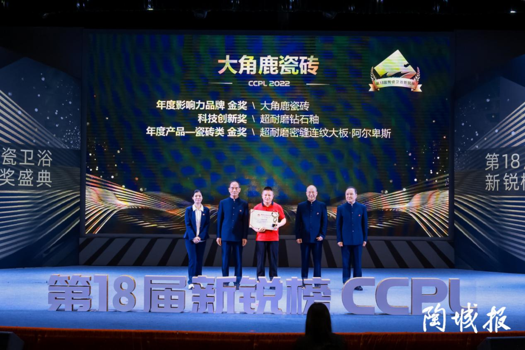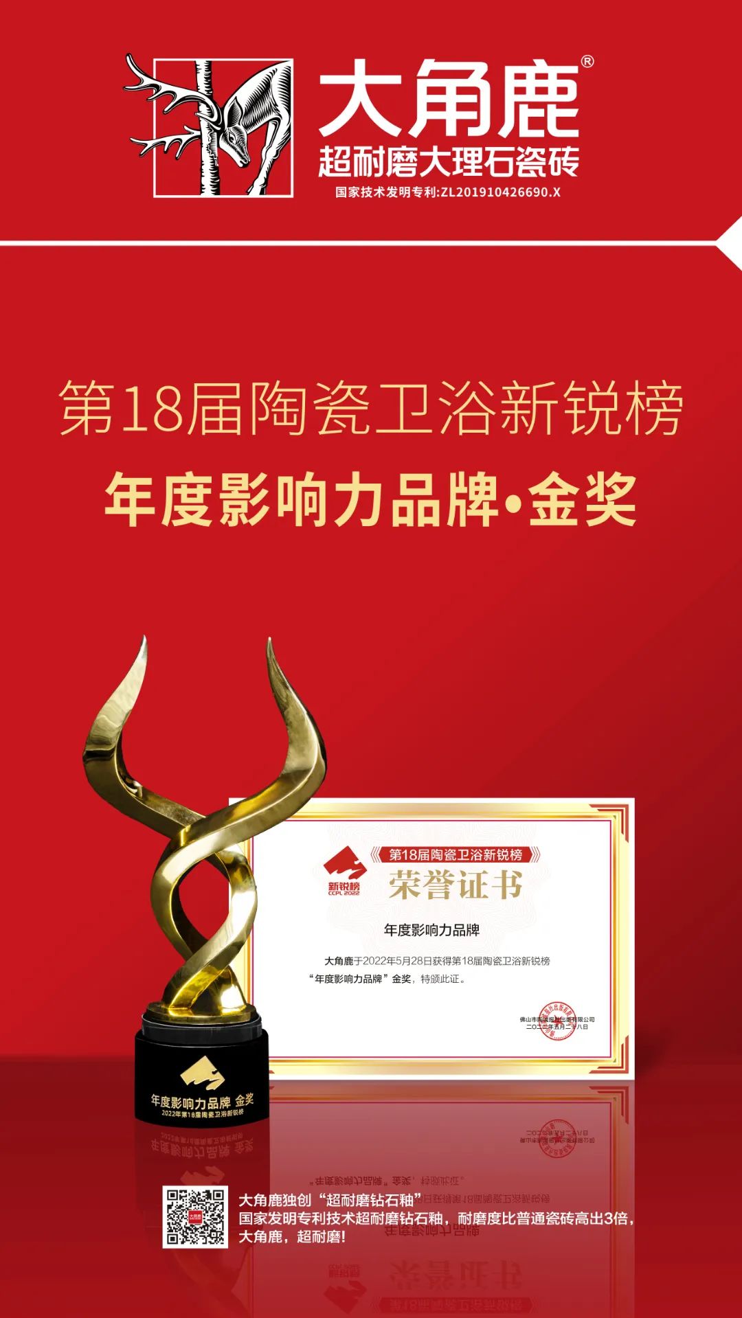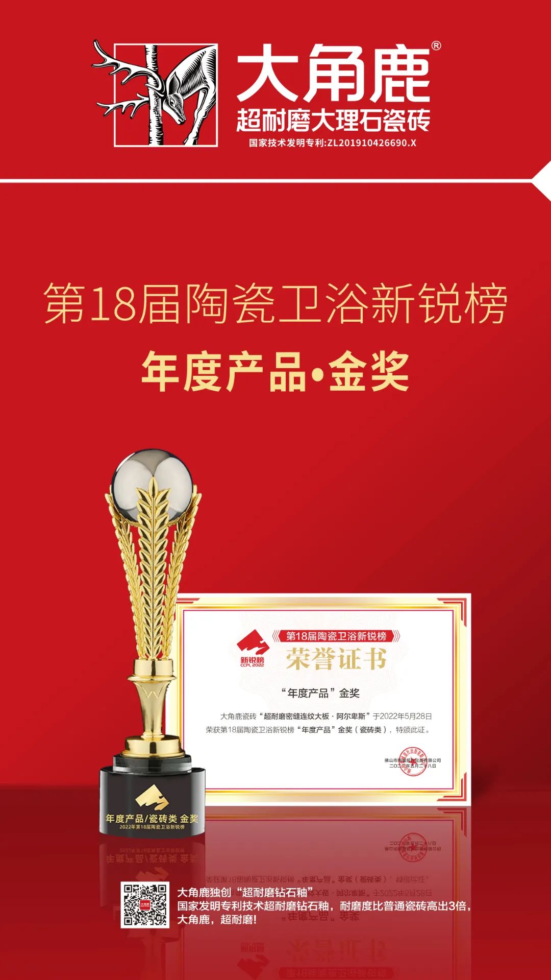 5月28日,由中国陶瓷行业新锐榜组委会、陶城报联合主办的第十八届陶瓷卫浴新锐榜颁奖典礼在佛山市新媒体产业园隆重举行。凭借引领全球的超耐磨技术和品牌影响力,大角鹿从众多品牌中脱颖而出,荣获科技创新奖、年度影响力品牌·金奖、年度产品·金奖3项大奖。