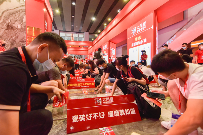 真金不怕火炼,应广大消费者如何挑选好瓷砖的迫切需求,大角鹿在中国陶瓷工业展火爆上演超耐磨万人pk大赛,让现场观众亲自体验“瓷砖好不好,磨磨就知道”。新浪家居、腾讯家居、陶瓷资讯、百度、抖音、天猫等六大平台同步直播,50+万全球家居人与现场观众共同见证了大角鹿超耐磨!
