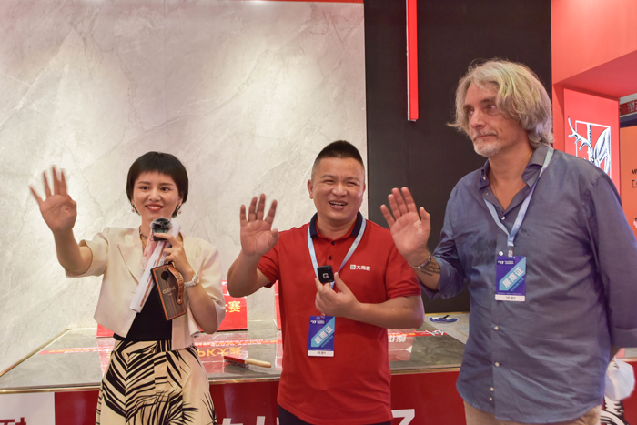 设计师阿爽走进佛山陶博会,以专业角度教大家如何选一款真正好用的瓷砖,大角鹿创始人南顺芝和大角鹿产品研发总监、意大利资深设计师罗伯特受邀出席直播间,与设计师阿爽2000多万粉丝分享如何挑选一片好瓷砖以及与观众共同见证大角鹿超耐磨是如何炼成的。同时,新浪家居、腾讯家居、中国陶瓷网、陶瓷信息、陶瓷资讯、华夏陶瓷网、中陶家居网、陶卫网、抖音、百度、天猫等11大平台同步直播见证大角鹿超耐磨是如何炼成的。