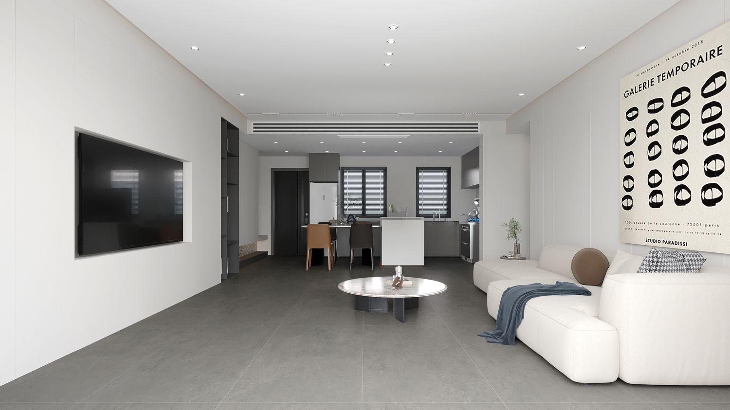 配以简洁的灰、白两色背景墙