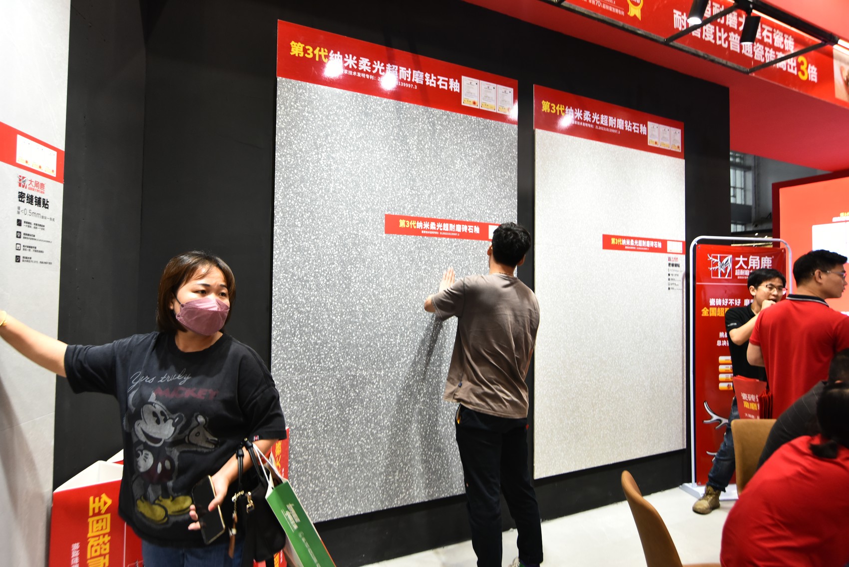 在本次展会上重点展示的大角鹿超耐磨柔光砖,独创“柔光肌肤”国家专利技术,同时运用了“超耐磨钻石釉”技术,解决了耐磨性和不易清洁的问题,高度迎合了高品质家居生活人群的极致追求。