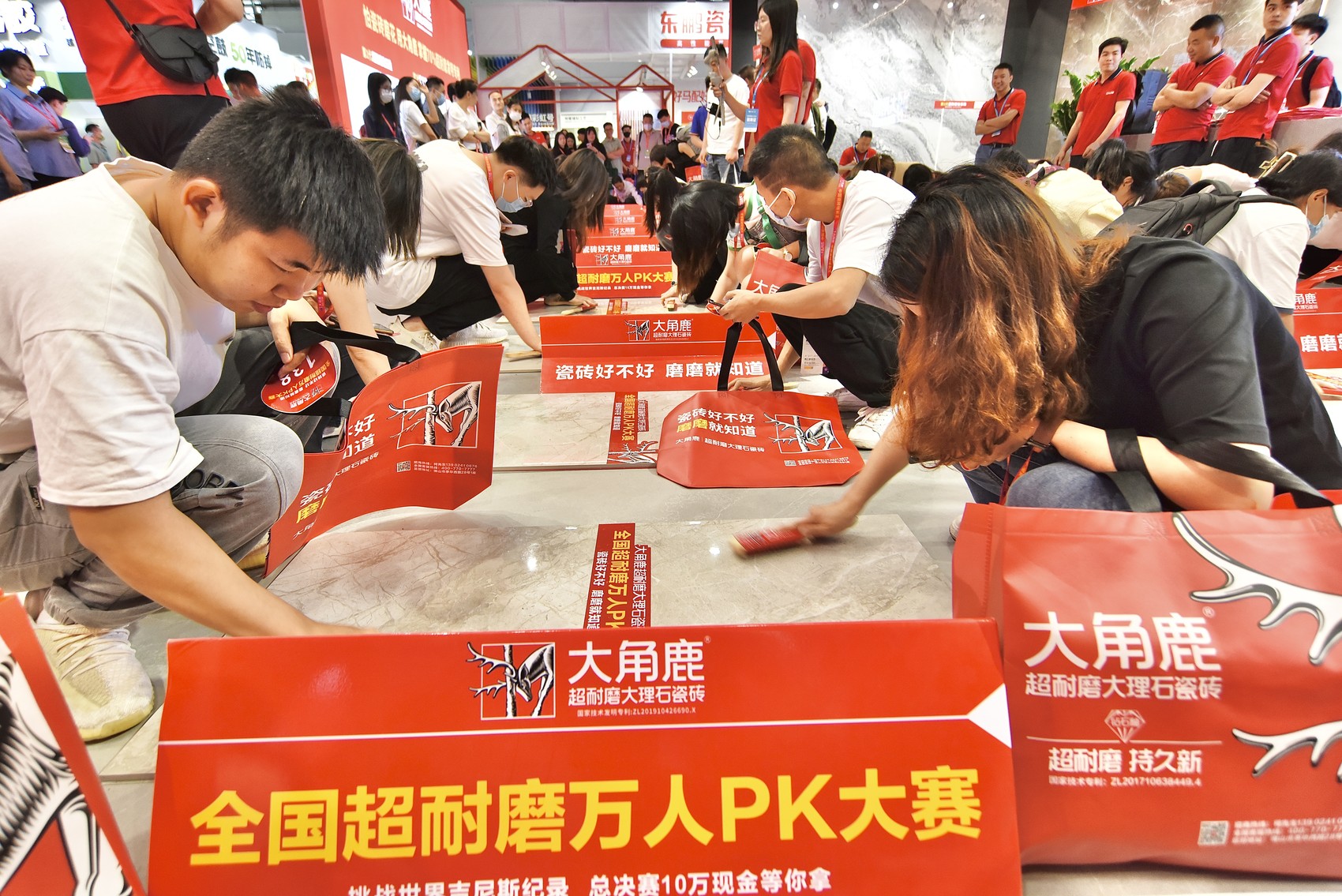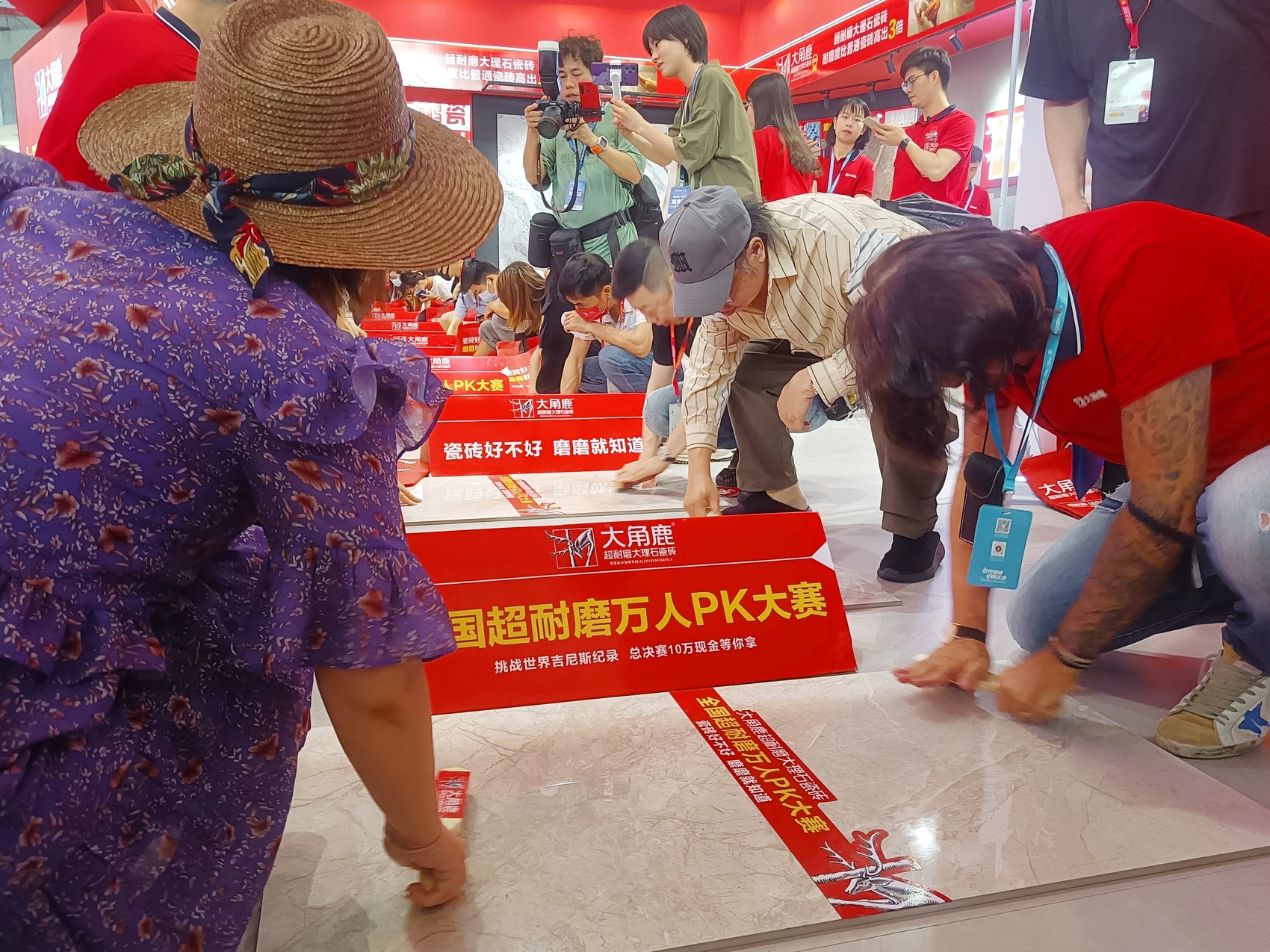大角鹿超耐磨万人PK大赛已在全国317个城市举办了2500多场,累计超125000人参与、750000人现场共同见证大角鹿超耐磨。本次大角鹿超耐磨万人pk大赛·佛山陶博会站同样非常精彩,燃爆展会,同时,新浪家居、腾讯家居等8大平台同步直播盛况,10+万全球建陶人与现场观众共同见证了大角鹿超耐磨!