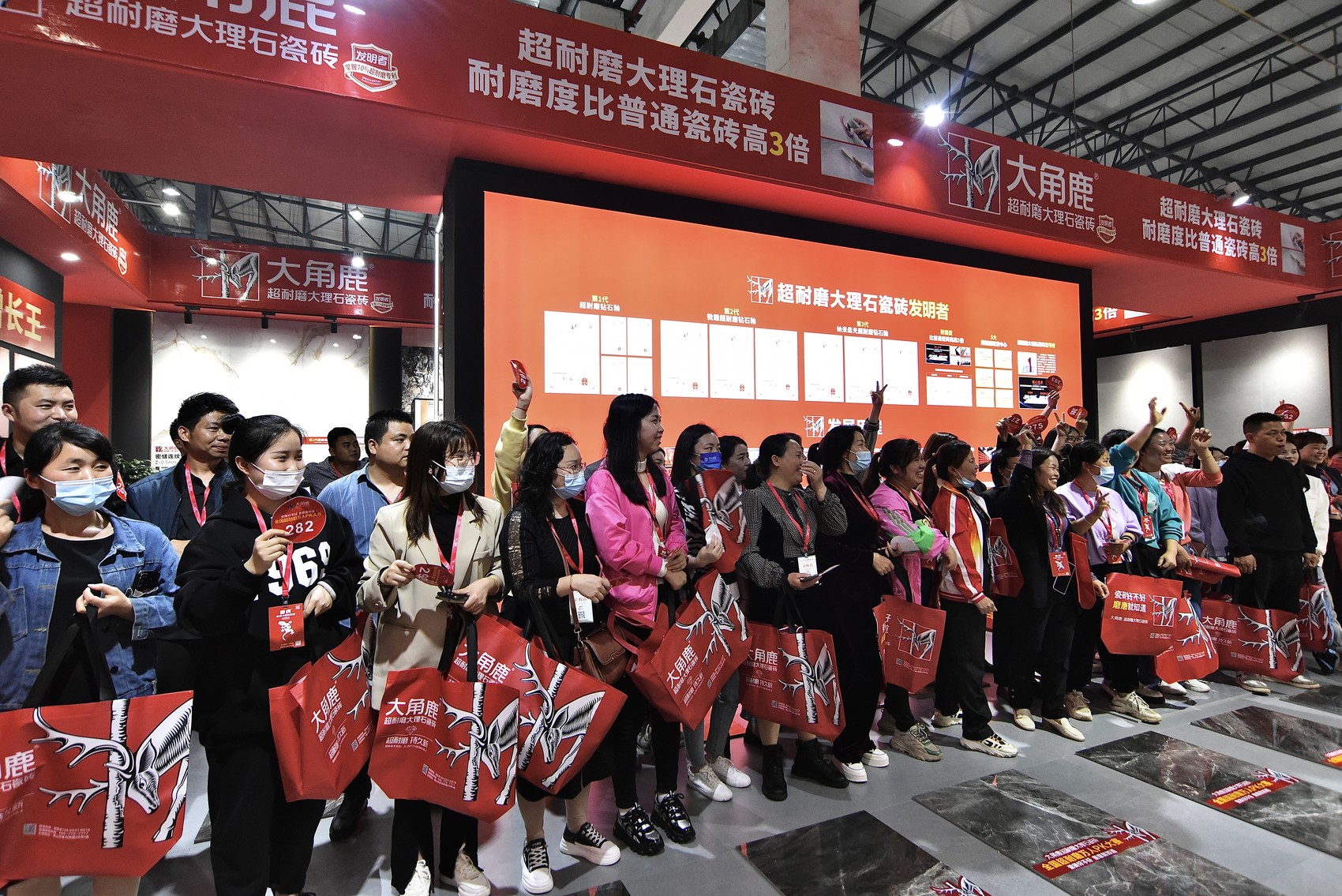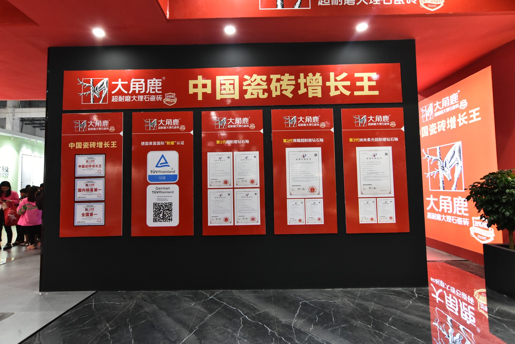 大角鹿掌握超耐磨瓷砖核心技术,拥有超七成超耐磨国家发明专利技术,耐磨度达4级以上,比普通瓷砖高出3倍,是耐磨度全球第一和超耐磨发明专利数量第一的瓷砖品牌,并被第三方国际权威调研机构弗若斯特沙利文认证为“中国瓷砖增长王”,吸引全国各地众多瓷砖经销商慕名而来。