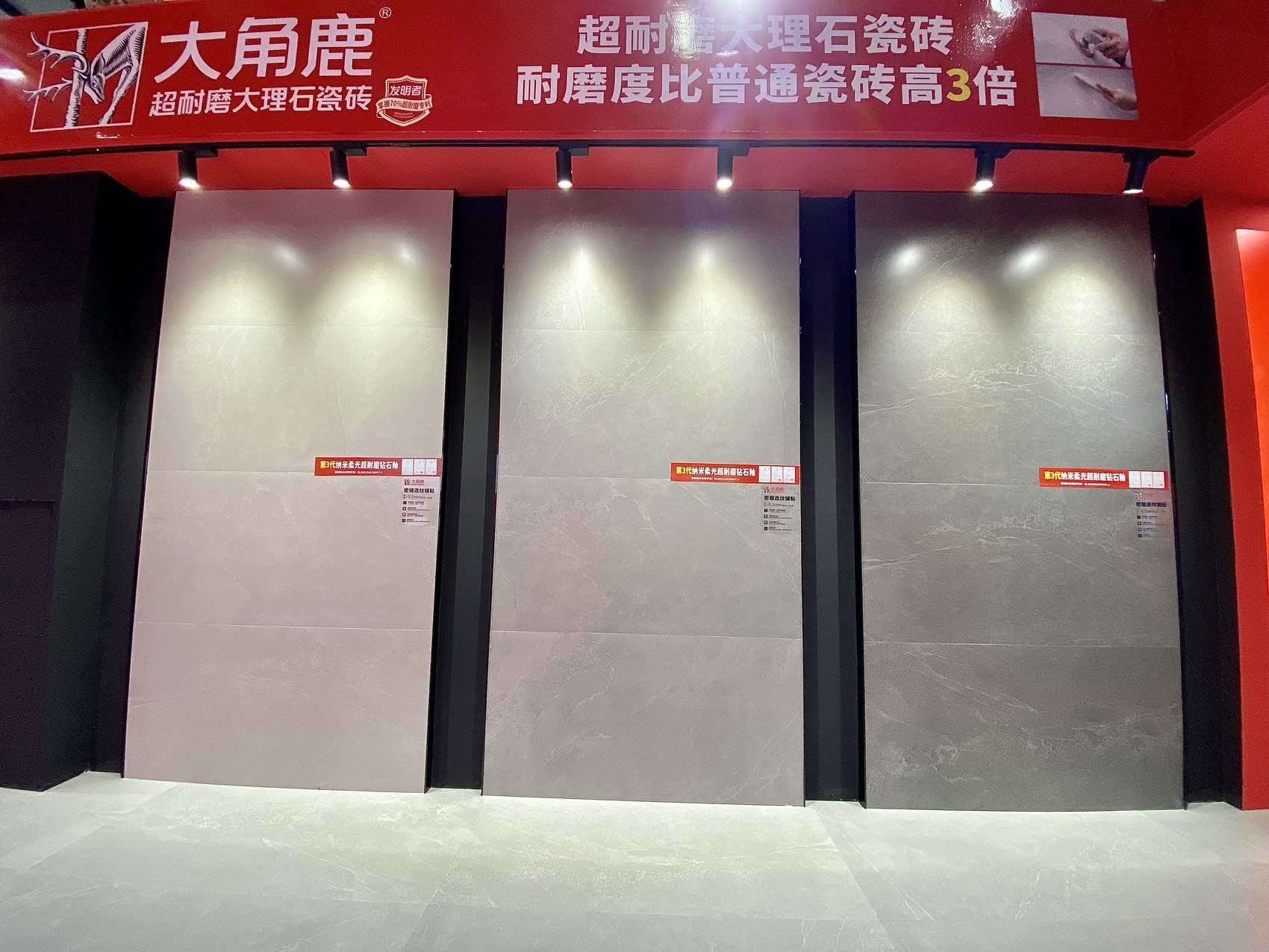 作为超耐磨大理石瓷砖发明者,大角鹿独创第1代超耐磨钻石釉技术、第2代微雕超耐磨钻石釉技术,不断刷新瓷砖耐磨新高度,持续实现了耐磨度的全球引领,改变了中国瓷砖市场格局,带领中国瓷砖进入超耐磨大时代。在高安陶博会现场,大角鹿展出了第3代超耐磨技术——大角鹿自研纳米柔光超耐磨技术,引发业内热烈关注。据悉,该项目技术在2023年4月17日已通过国家级科技成果鉴定,项目整体技术达到国际领先水平,已获授权中国发明专利3件,并申请美国和欧盟专利各1件。