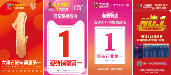 大角鹿连续霸榜“315家装节”、“618狂欢日”、“双11全球狂欢日”、“双12全球狂欢日”等线上活动瓷砖类目销量第一的位置,成为瓷砖线上市场的一大焦点,为全国门店获取了大量流量的同时,也印证了市场对大角鹿产品实力和品牌口碑的高度认可。