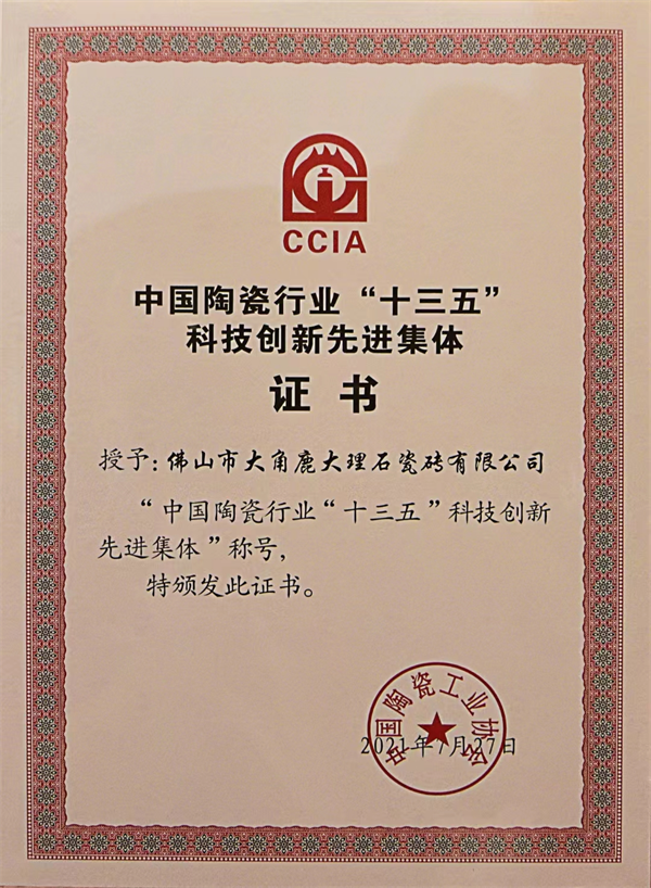 耀眼的成就背后,是大角鹿对技术的硬磕和对用户需求的极致洞察。大角鹿拥有中国陶瓷工业协会授予的“中国超耐磨陶瓷新材料研究院”和“大理石瓷砖研究所”、中国建筑卫生陶瓷协会授予的“超耐磨陶瓷新材料研究中心”、联合意大利卡罗比亚釉料公司成立的“超耐磨钻石釉中国研发中心”四大研发中心以及中国建筑材料流通协会授予的“中国超耐磨陶瓷新材料示范基地”。