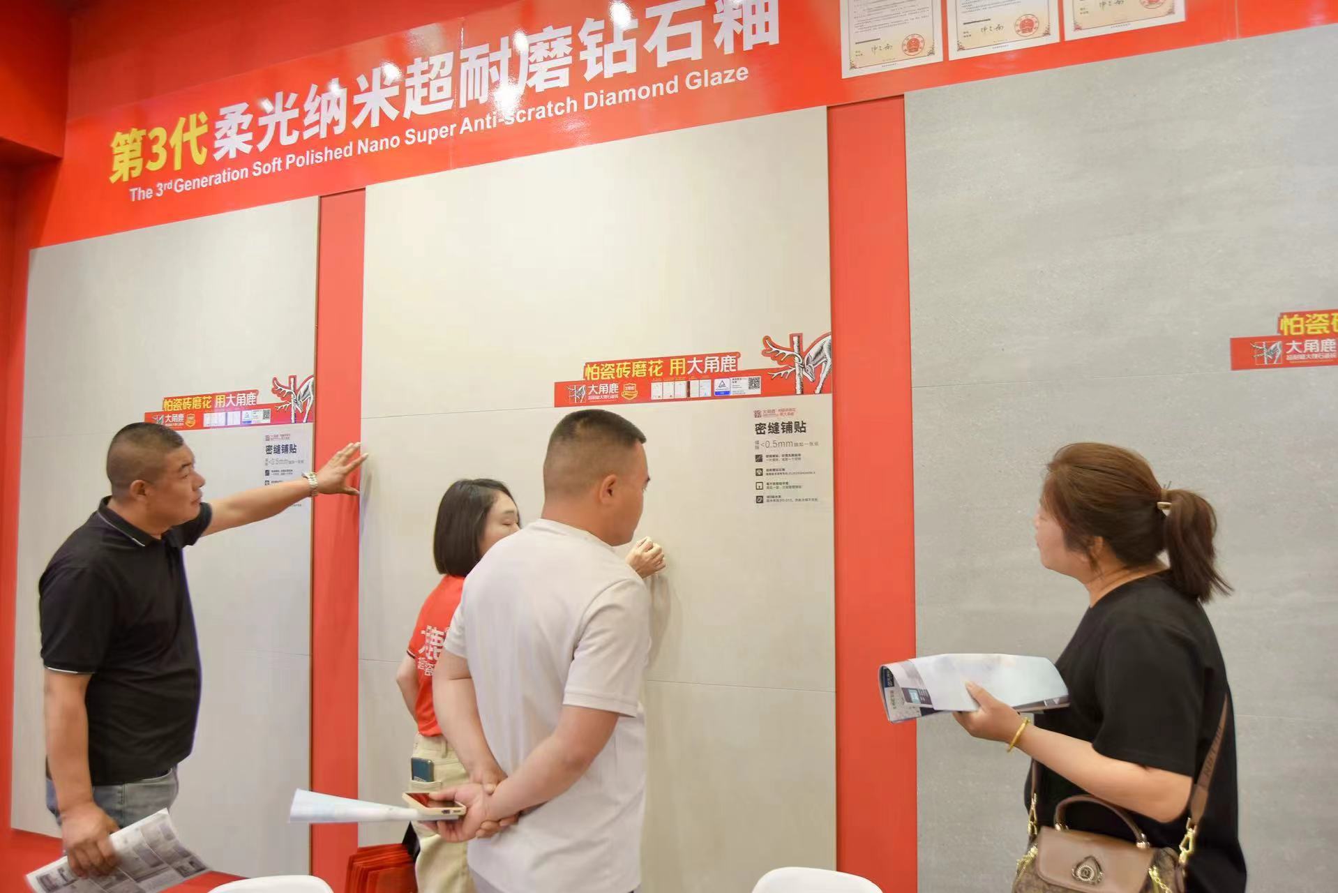 中国瓷砖增长王大角鹿携引领全球的超耐磨技术亮相,以硬核的产品实力和超高展会人气,向全球客商展现了中国瓷砖品牌的硬核实力。