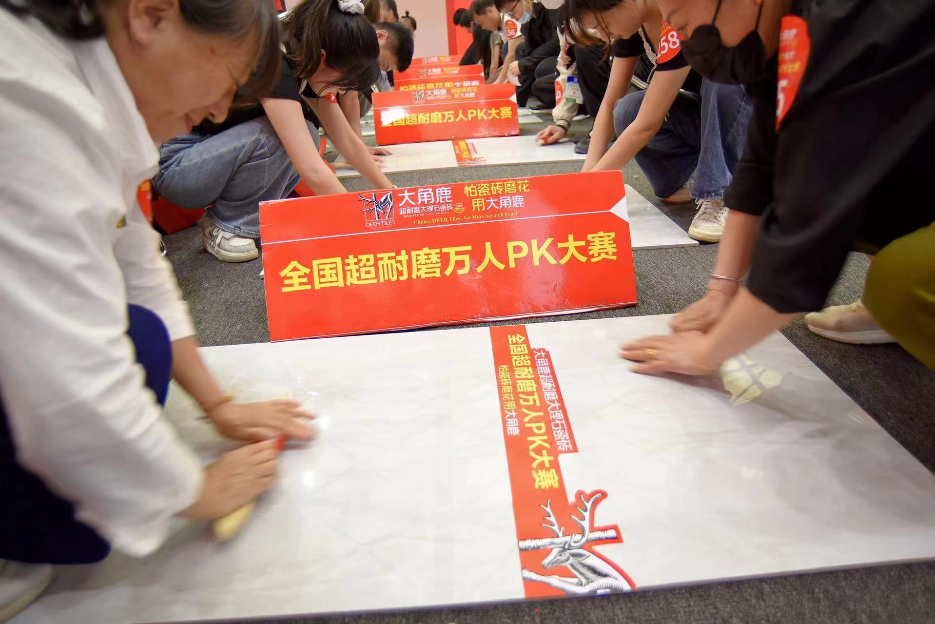国内外观众争相参与超耐磨PK赛,这一盛况被定格为本届上海国际厨卫展的经典“名场面”,经现场数万国际观众打卡和12家主流媒体直播,180万+全球观众共同见证了大角鹿超耐磨品质。