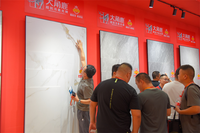 继10月17日"从超耐磨到超抗污 大角鹿柔光敢称王——大角鹿超抗污柔光砖发布会"盛大举办后,大角鹿“抗污王”超抗污柔光砖作为新品首次亮相佛山陶博会,无疑成为了本次展会最受瞩目的焦点,吸引了众多经销商及消费者慕名而来。