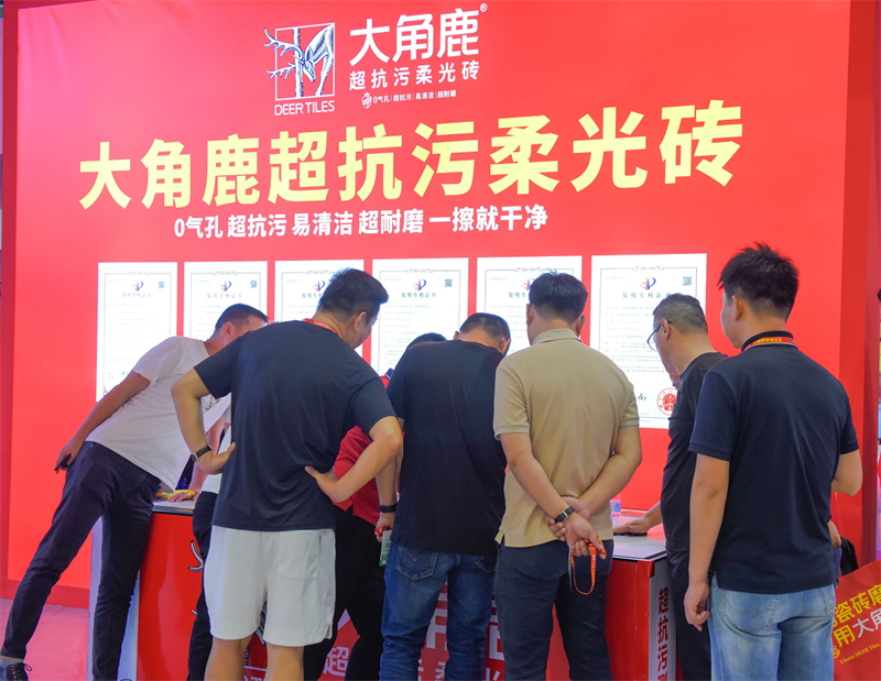 为了让参观者更直观地感受大角鹿超抗污柔光砖的卓越性能,大角鹿在佛山陶博会期间特别举办了“大角鹿超抗污万人PK大赛”,众多经销商、业界同仁、行业大咖及消费者们现场参与评测。来自四川的经销商李先生在亲身体验了大角鹿超抗污柔光砖后表示,大角鹿柔光砖的抗污性能远远超过了市面上的其他同类产品:“现在很多品牌都在做柔光砖,但真正能做到抗污几乎没有,大角鹿的柔光砖不仅超耐磨,而且是真抗污,这一点非常了不起!”