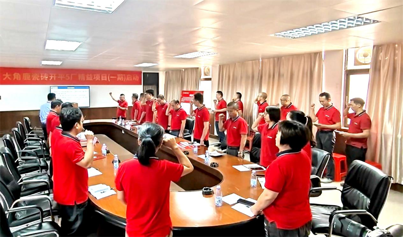 “改善,持续改善,精益生产,质量第一!”此次大角鹿开平5厂精益项目启动会的圆满召开,为大角鹿的高质量发展注入了新的理念和活力。大角鹿将以此次启动会为契机,推进精益生产管理走深走实,不断优化流程、提高效率,为企业加快培育瓷砖新质生产力赋能,驱动大角鹿朝着更高效、更精益、更可持续的高质量发展道路坚实迈进。
