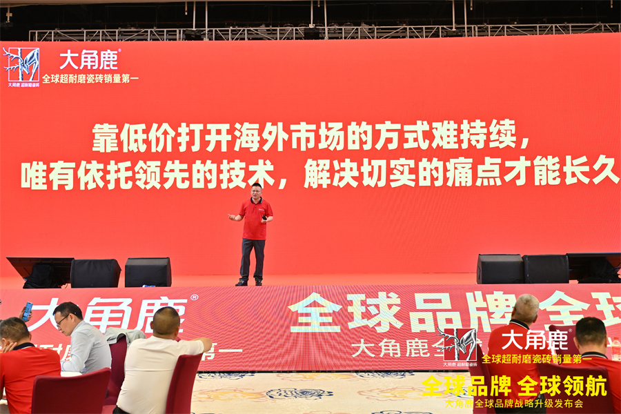 发布会上,广东陶瓷协会会长陈环高度评价大角鹿为行业带来的变革意义。陈环会长指出,大角鹿通过持续的技术创新和卓越的市场表现,打破了海外高端市场对中国瓷砖品牌的刻板印象,成为广东乃至中国陶瓷产业高质量发展的典范。他呼吁所有陶瓷企业学习借鉴大角鹿的“创新精神”,携手将广东打造为世界级陶瓷产业集群。