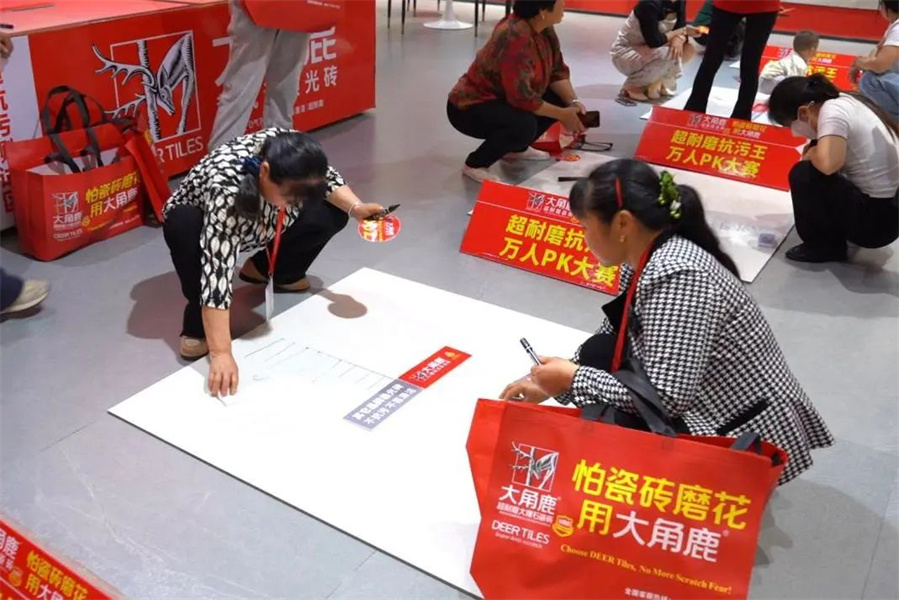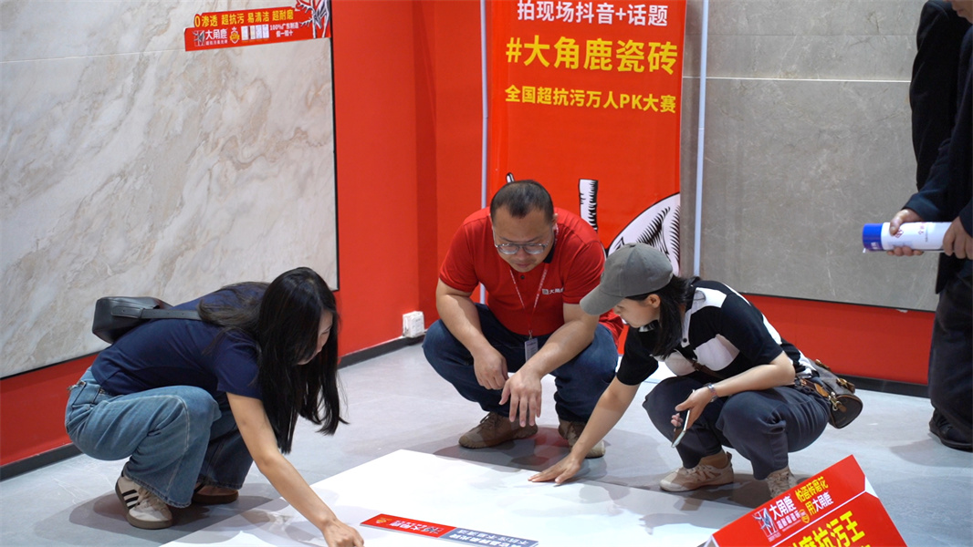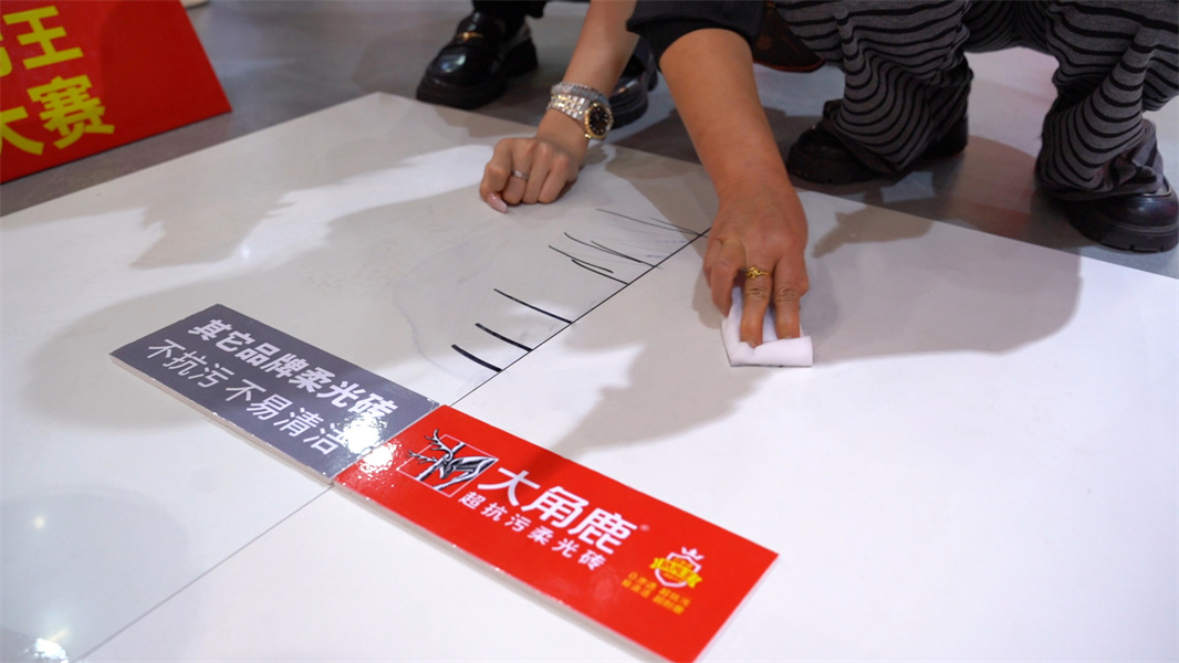 为全面展示超耐磨抗污王瓷砖的卓越性能,大角鹿特别举办了“全国超耐磨抗污王万人PK大赛”,广泛邀请观展者、经销商、行业同仁和媒体朋友现场参与挑战。