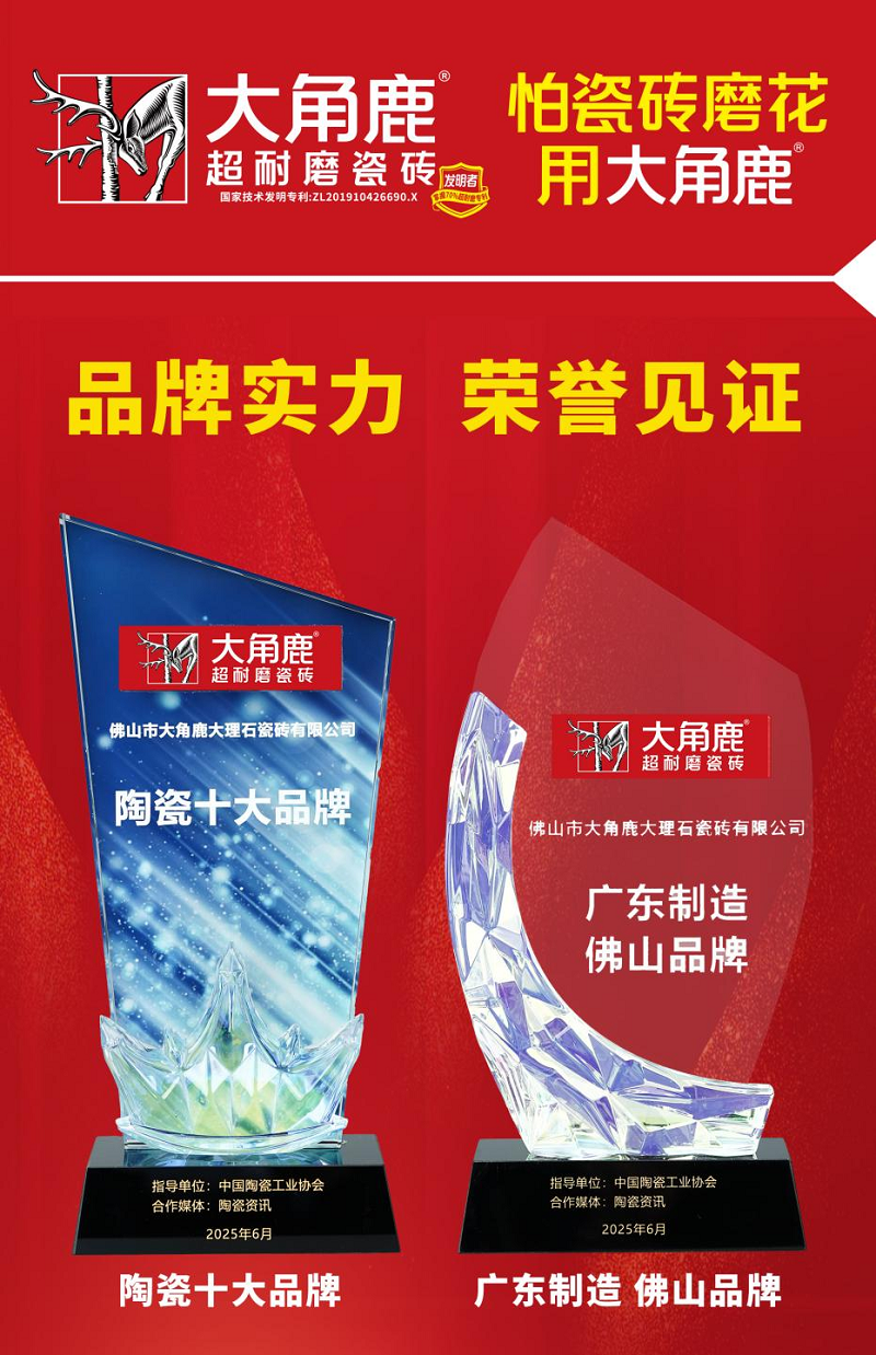 大角鹿瓷砖荣获“陶瓷十大品牌”及“广东制造 佛山品牌”两项殊荣的背后,是大角鹿十余年聚焦超耐磨技术厚积薄发的缩影。从佛山出发,到征服全球市场,大角鹿以“技术深耕+品牌塑造”的双轮驱动,不仅为陶瓷行业转型升级提供范本,更向世界展示了中国智造的创新力量,引领中国陶瓷品牌走向世界舞台。