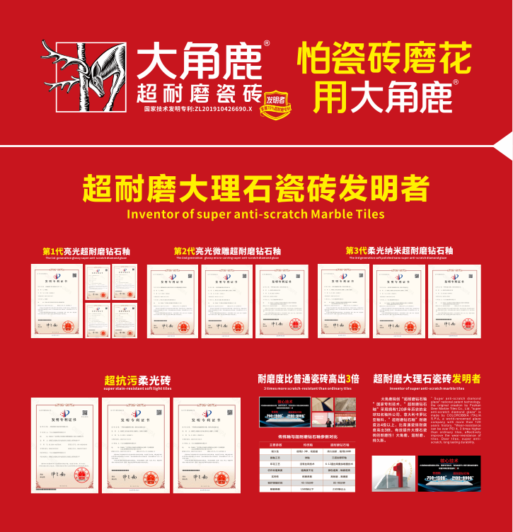 作为超耐磨大理石瓷砖的发明者,大角鹿瓷砖始终专注于超耐磨技术的研发与创新。从第1代亮光超耐磨钻石釉,到第2代亮光微雕超耐磨钻石釉,再到第3代柔光纳米超耐磨钻石釉,大角鹿不断突破技术壁垒,推动超耐磨瓷砖的性能升级。2025年,大角鹿更是发布了第4代蓝宝石晶体超耐磨钻石釉,具备6000转极限耐磨能力,再次刷新了行业标准。这一技术的不断迭代,不仅解决了瓷砖易刮花、不耐磨等消费痛点,更让大角鹿瓷砖在市场上脱颖而出,赢得了广泛的认可与好评。