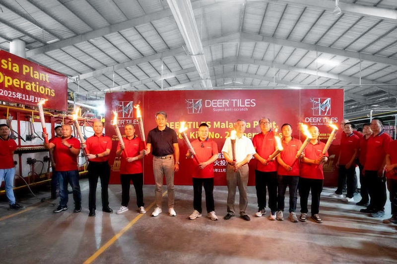 随着全球市场对高品质超耐磨瓷砖需求的持续爆发,大角鹿海外订单快速增长,产品多次出现阶段性供不应求。为强力回应终端热销缺口,11月16日,大角鹿(DEER)马来西亚工厂2号窑正式点火投产,全面释放新一轮高效产能,品牌全球供应体系进一步扩容提速。