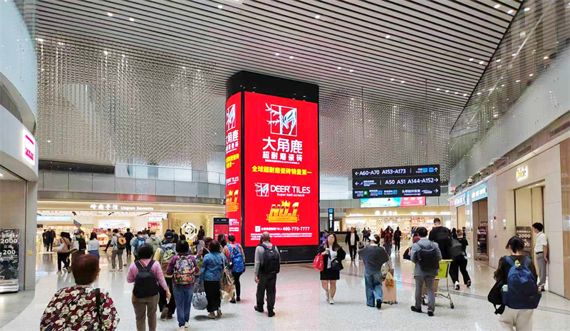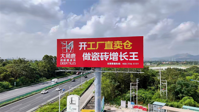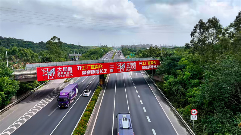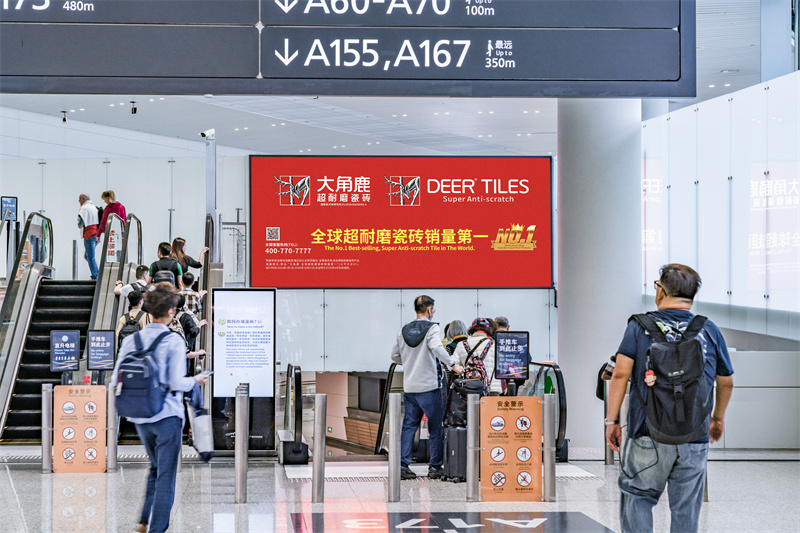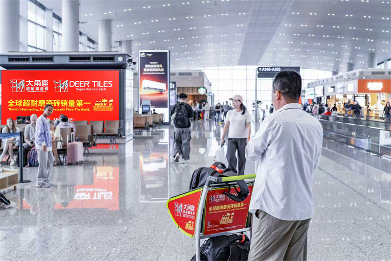 展会期间,佛山城市主干道、核心商圈及展馆周边区域,以大角鹿品牌标志性红色为主视觉的展示画面密集呈现,形成极具辨识度的城市品牌景观。此前,大角鹿已强势霸屏广州白云国际机场T2T3,率先面向国际客流实现品牌曝光。从国际交通枢纽到展会主场城市,大角鹿借助佛山双展契机,将品牌传播势能与城市产业影响力深度融合,面向全球客商充分展现中国瓷砖品牌的综合实力与行业声量。