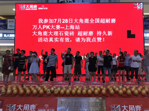 通过超耐磨PK大赛,大角鹿超耐磨形象深入人心,让上海和福建龙岩的消费者毫不犹豫下单抢购砖??档碧?,来自上海的海滨新城、金悦华庭等35户高档小区业主现场下单,总单值在70万元以上;来自福建龙岩的江山名筑、梧桐郡、牡丹园等33户高档小区和别墅业主选择购买了大角鹿超耐磨大理石瓷砖。