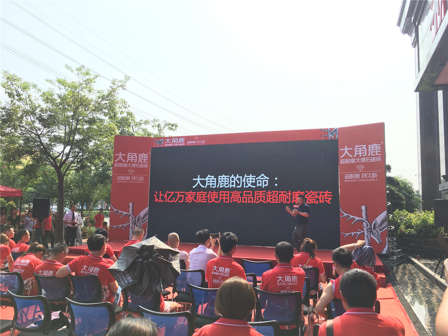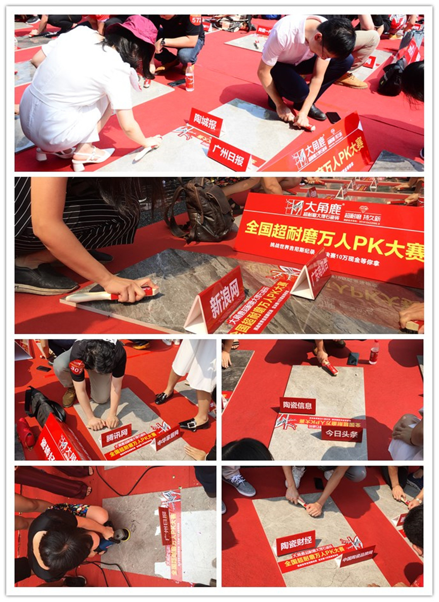 8月8日,大角鹿超耐磨 品类王进万家——大角鹿瓷砖大学成立仪式暨全新总部媒体见面日在佛山成功举办,来自新浪、腾讯、今日头条、广东电视台、广州日报等50多家主流媒体和陶瓷行业媒体以及大角鹿全国优秀经销商共同见证了盛况,并亲自体验到大角鹿超耐磨大理石瓷砖的耐磨度是普通瓷砖的3倍。