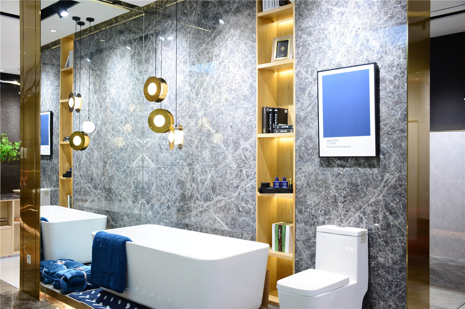 大角鹿全新总部展厅主打现代轻奢风格,在产品陈列、空间表现、软装搭配等方面颇为讲究,在产品、设计等方面展现出耳目一新的现代感。