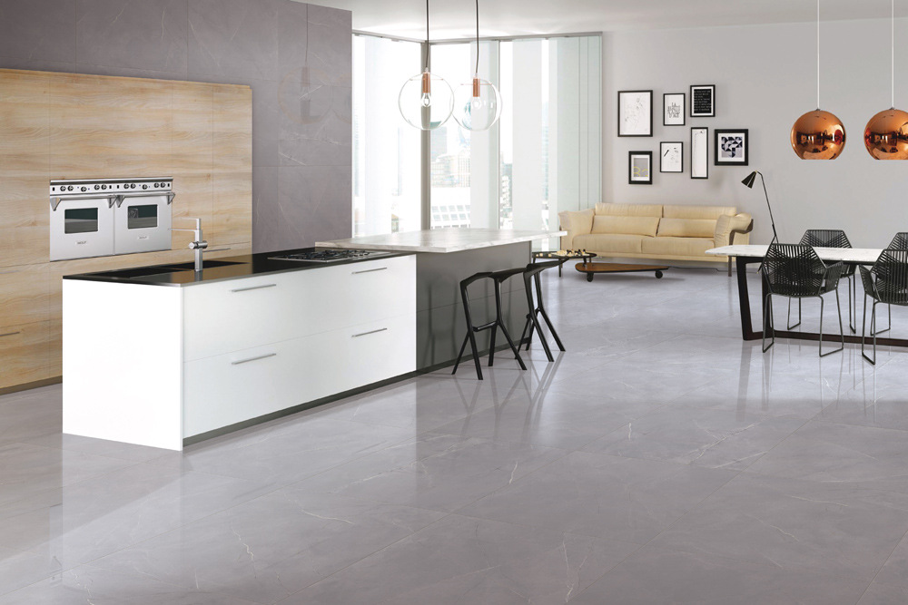 设计师根据其诉求,最终确定了现代简约风格。整个室内以黑、白、灰为主调,白色能呈现住宅的最自然纯粹的本质,黑色则展现出现代硬朗与艺术前卫的气质,大面积铺贴了灰色大理石瓷砖地面,使自然与艺术完美融合。干净的线条是空间设计的主要特点,呈现出利落与时尚的空间感。