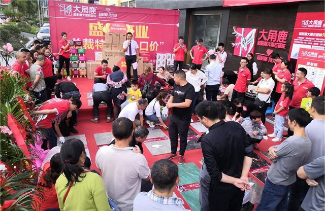 买瓷砖一定要选耐磨的,这是消费者购买瓷砖时首先考虑的因素。通过全国超耐磨万人PK大赛,消费者亲自体验到瓷砖耐磨度的重要性,同时大角鹿超耐磨形象深入人心,每场开业活动现场人气爆满,很多业主被大角鹿过硬品质所打动,纷纷组团下单抢购砖。
