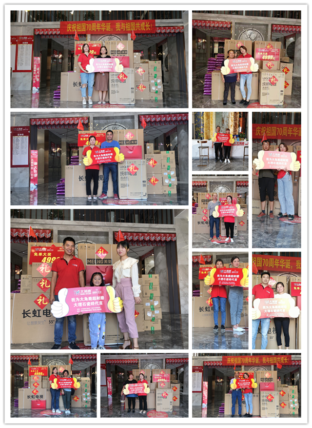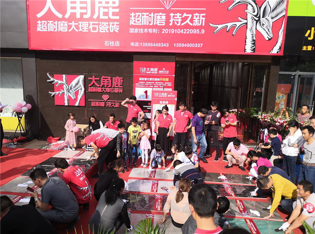 70年风雨兼程,70年拼搏奋进!大角鹿超耐磨大理石瓷砖中国7家店盛大开业,齐贺中华人民共和国成立70周年。