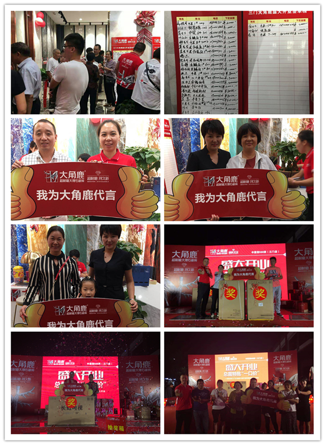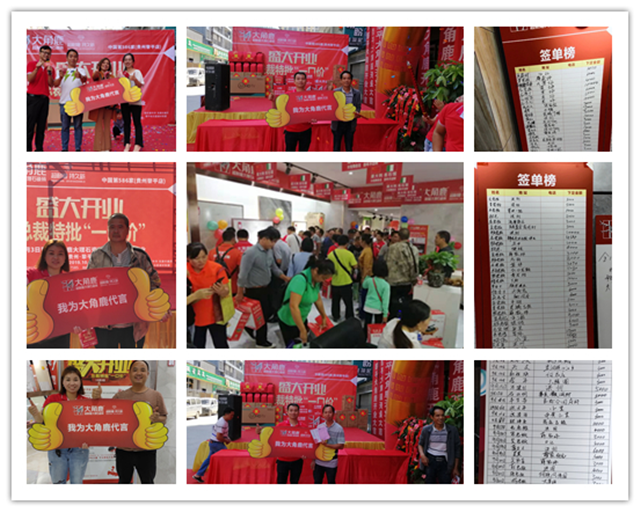 9月22日-10月7日,大角鹿中国第566家浙江三门店、第585家贵州安顺店、第586家贵州黎平店、第588家湖南澧县店、第589家浙江巍山店、第591家重庆石柱店、第611家江苏常熟店陆续盛大开业!同时,全国超耐磨万人PK大赛7站点也如期开赛,让全国各地消费者亲自体验了“大角鹿,超耐磨、持久新”并引发抢购热潮。