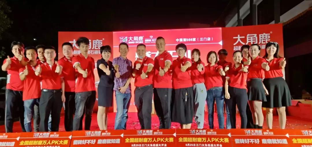 由于此前以销售性价比瓷砖为主,周建江对品牌运作和活动推广不太了解。对于这样的“新手”,大角鹿总部会派出营销团队,直接跟周建江团队讨论市场调研和活动策划,“他们的帮扶活动确实不错,做事也都实实在在的,也挺辛苦的。”前期扎实的工作换来了可喜的成果。今年6月周建江的展厅全部装修完毕,10月26日正式举行开业典礼。在大角鹿总部的帮扶支持下,当天超耐磨PK赛发挥了影响力,现场参与人数超过100多人。“我们当天现场收了30多万元现金,总签单接近60万元,接下来的订单没法估算。”
