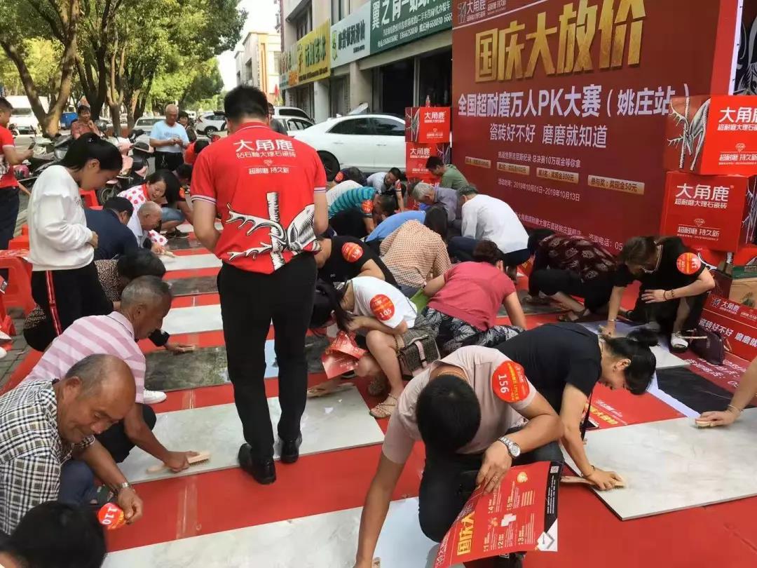 而另一个让周建江满意的也是大角鹿的超耐磨品牌的卖点。“除了PK赛,平时客户进来,我们也可以当场用超耐磨测试,让客户感受大角鹿瓷砖的质量,一些难搞的客户,我们直接让客户用打磨机去体验,基本上体验过的客户,十个有九个都会成交。这种营销方式能够触动消费者,让他们更直观地了解我们瓷砖的表面耐磨度。”
