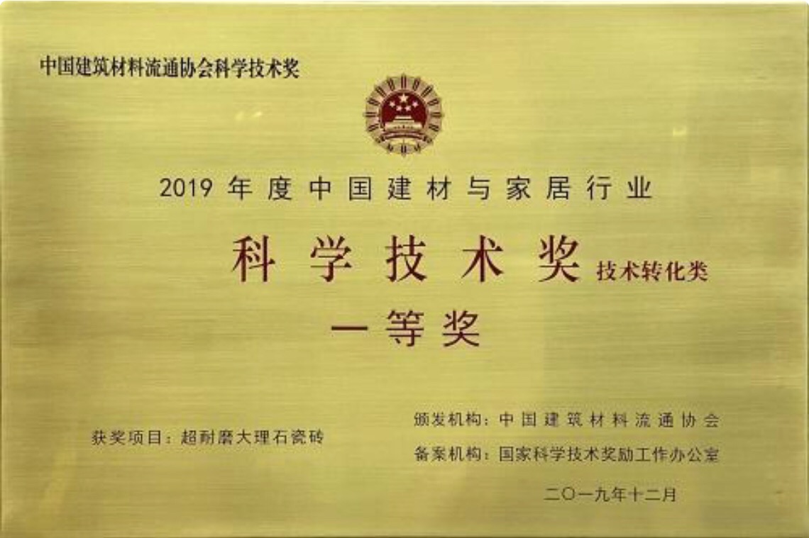 一、凭借全球首款超耐磨瓷砖荣获国家行业科学技术一等奖