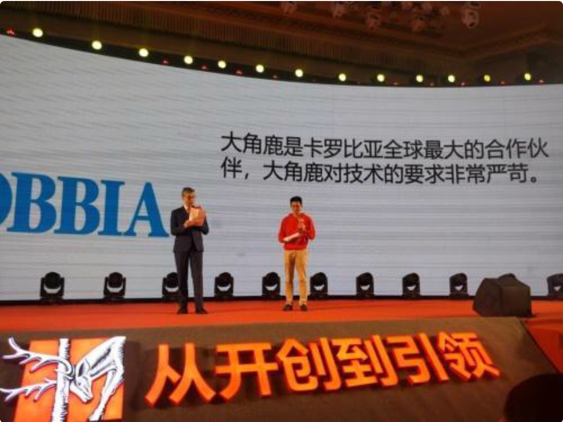 在大角鹿超耐磨战略发布周年盛典上,意大利卡罗比亚釉料总经理狄马罗发表了重要讲话,他表示:“作为卡罗比亚公司全球最大的合作伙伴,大角鹿对技术要求非??量獭4蠼锹棺钚乱淮晔砸丫锏椒浅8叩哪湍バ阅?,刷新了全球消费者对中国瓷砖的认知,在国内和国外市场都保持着遥遥领先的地位。”