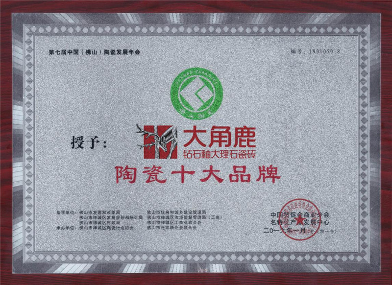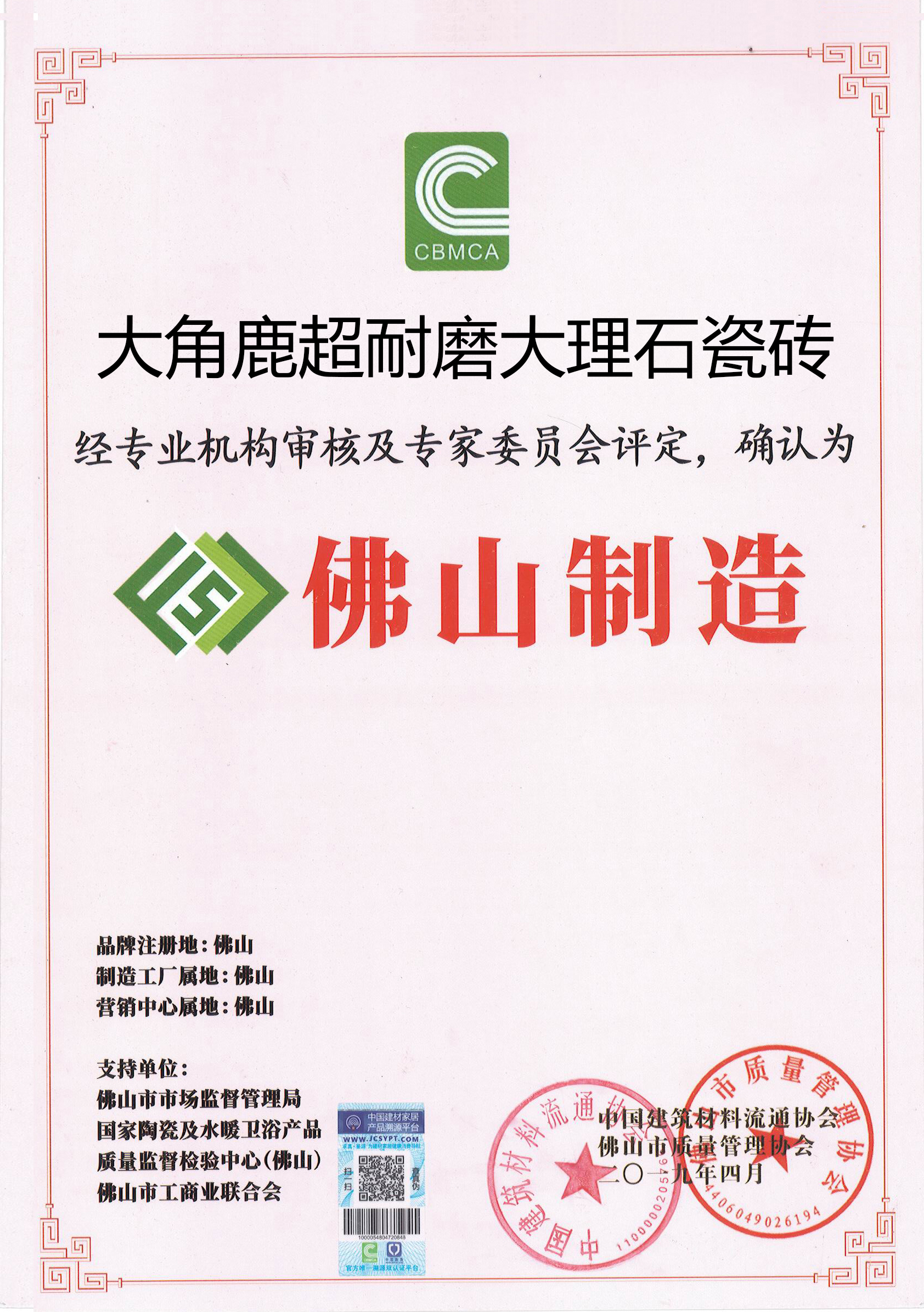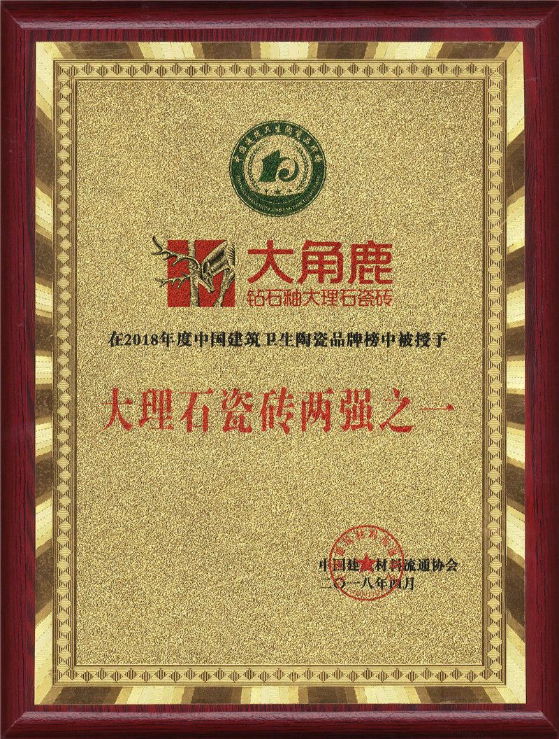 大角鹿专注于高品质超耐磨大理石瓷砖的研发、设计、生产与应用,在中国瓷砖绿色环保示范基地——广东佛山、广东开平、广东新丰、马来西亚等设有全球六大生产基地,拥有中国陶瓷工业协会授予的“中国超耐磨陶瓷新材料研究院”和“大理石瓷砖研究所”、中国建筑卫生陶瓷协会授予的“超耐磨陶瓷新材料研究中心”、联合意大利卡罗比亚釉料公司成立的“超耐磨钻石釉中国研发中心”四大研发中心以及中国建筑材料流通协会授予的“中国超耐磨陶瓷新材料示范基地”。