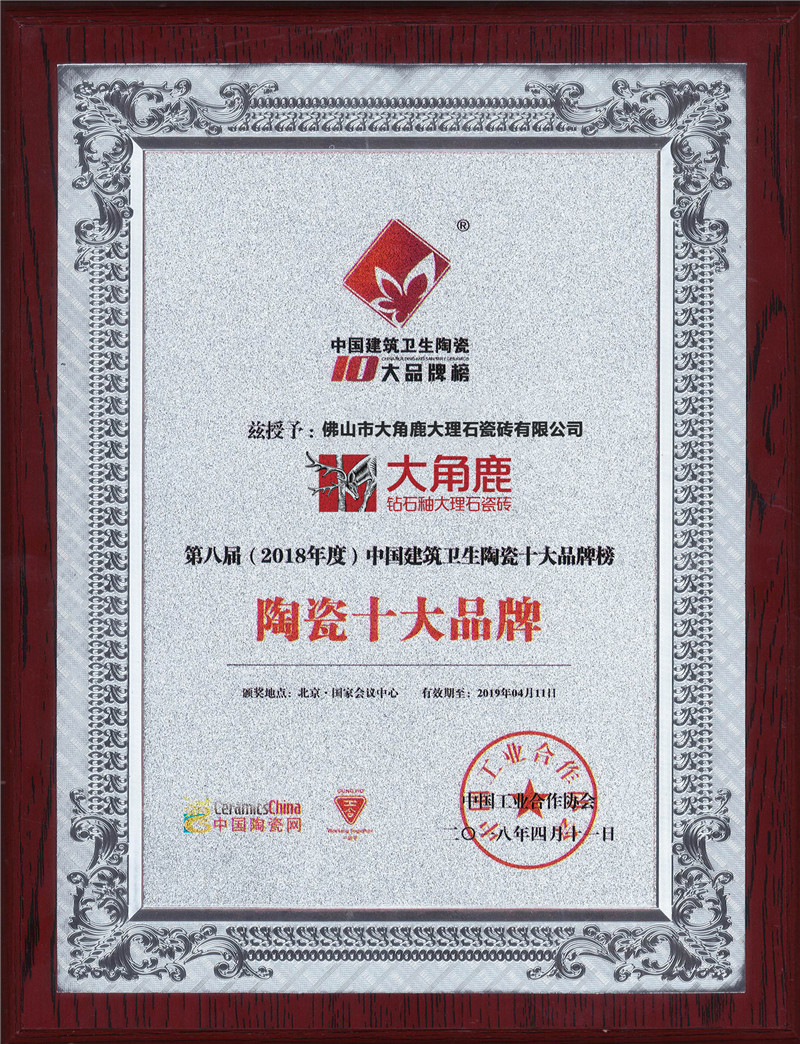 大角鹿作为“超耐磨瓷砖发明者”,拥有15项国家发明专利,荣获美国、欧盟超耐磨发明专利,并通过德国莱茵耐磨认证的中国瓷砖品牌,耐磨度达4级以上。